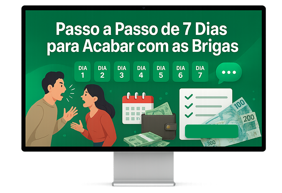 Um plano prático para aplicar imediatamente e transformar a relação com o dinheiro de forma leve e organizada, acabando de vez com as brigas.